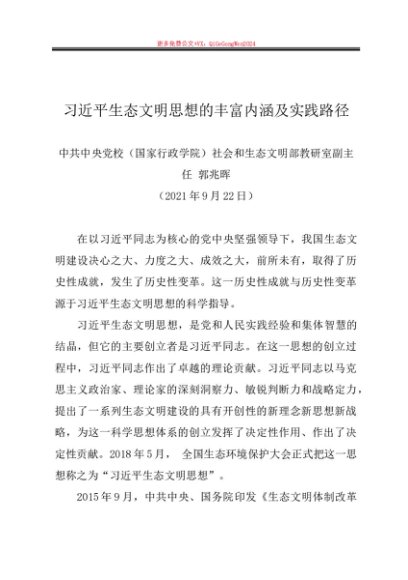 / 党课讲稿:20210922习近平生态文明思想的丰富内涵及实践路径——中央党校郭兆晖