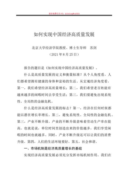 / 党课讲稿:20210825如何实现中国经济高质量发展——北京大学经济学院教授 苏剑