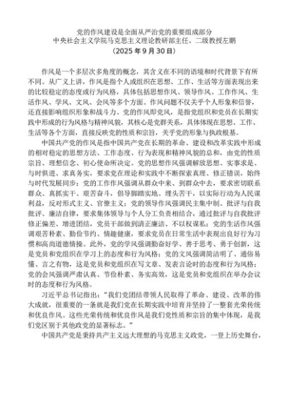 / 党课讲稿:20250930左鹏:党的作风建设是全面从严治党的重要组成部分