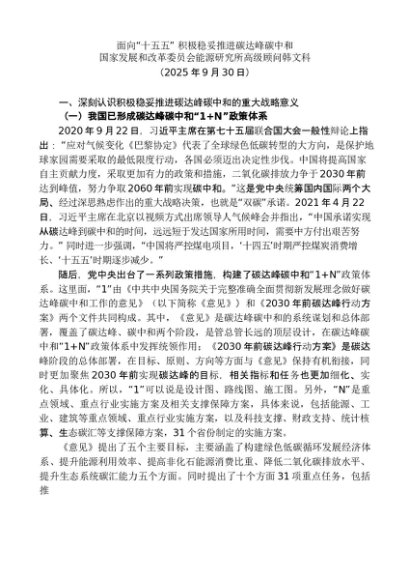 / 党课讲稿:20250930韩文科:面向“十五五” 积极稳妥推进碳达峰碳中和