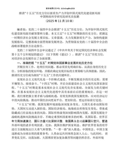 / 党课讲稿:20251130张鹏:廓清“十五五”历史方位以新质生产力开创中国式现代化建设新局面(二十届四中全会)