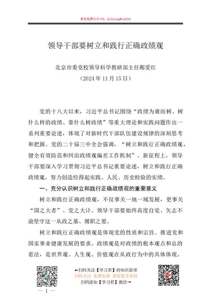 / 党课讲稿:20260228领导干部要树立和践行正确政绩观——北京市委党校领导科学教研部主任鄯爱红