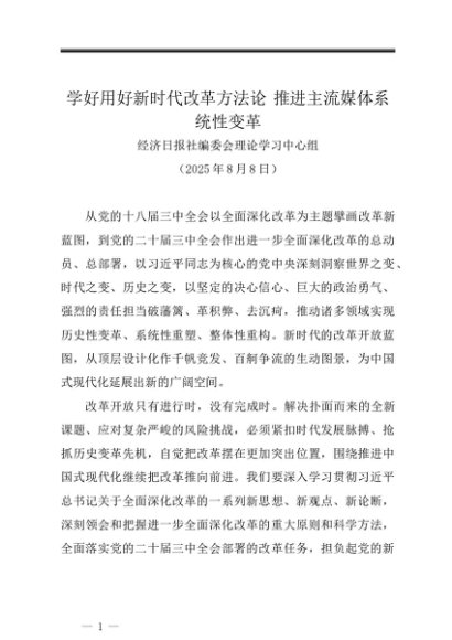 / 党组学习:20250808学好用好新时代改革方法论 推进主流媒体系统性变革——经济日报社编委会理论学习中心组