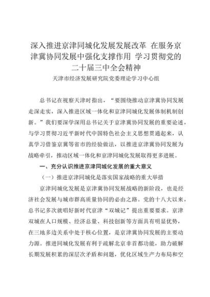 党组学习:20250730深入推进京津同城化发展发展改革 在服务京津冀协同发展中强化支撑作用 学习贯彻党的二十届三中全会精神——天津市经济发展研究院党委理论学习中心组