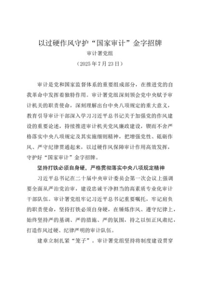 / 党组学习:20250723以过硬作风守护“国家审计”金字招牌——审计署党组