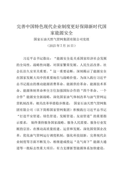 / 党组学习:20250716完善中国特色现代企业制度更好保障新时代国家能源安全——国家石油天然气管网集团有限公司党组