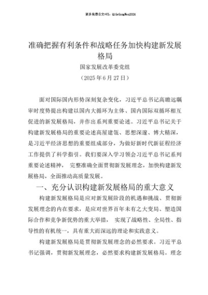 / 党组学习:20250627准确把握有利条件和战略任务加快构建新发展格局——国家发展改革委党组
