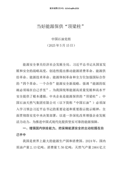 / 党组学习:20250515当好能源保供“顶梁柱”——中国石油党组