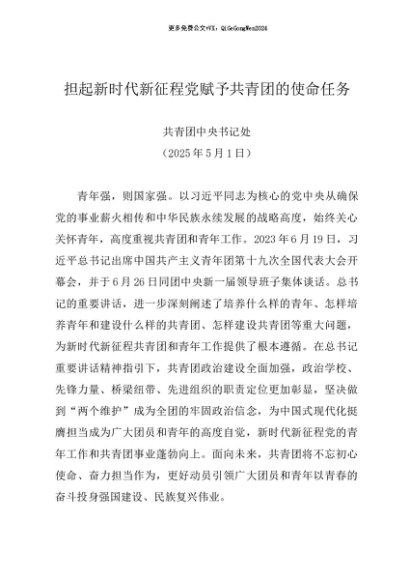 / 党组学习:20250501担起新时代新征程党赋予共青团的使命任务——共青团中央书记处