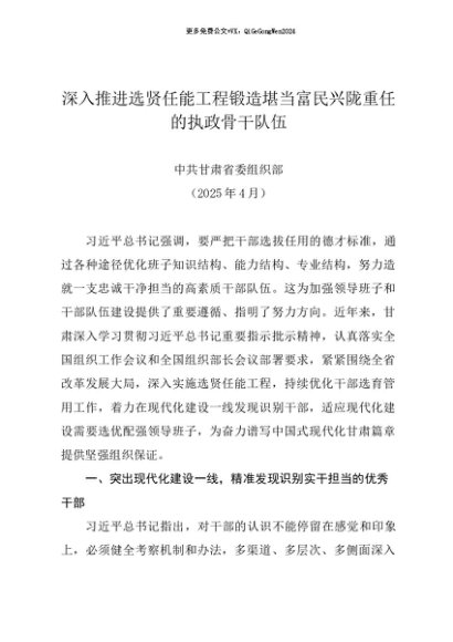 / 党组学习:20250430深入推进选贤任能工程锻造堪当富民兴陇重任的执政骨干队伍——中共甘肃省委组织部