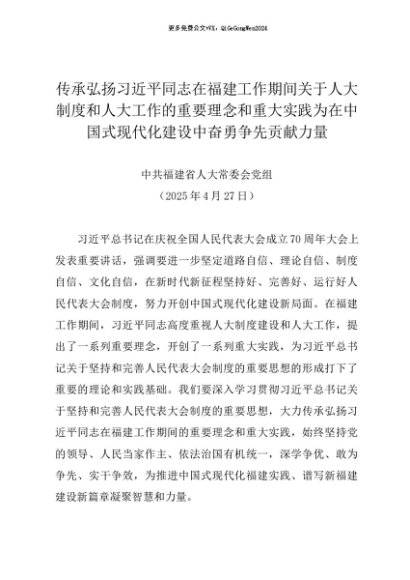 党组学习:20250427传承弘扬习近平同志在福建工作期间关于人大制度和人大工作的重要理念和重大实践为在中国式现代化建设中奋勇争先贡献力量——中共福建省人大常委会党组