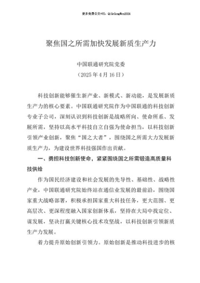 党组学习:20250416聚焦国之所需加快发展新质生产力——中国联通研究院党委