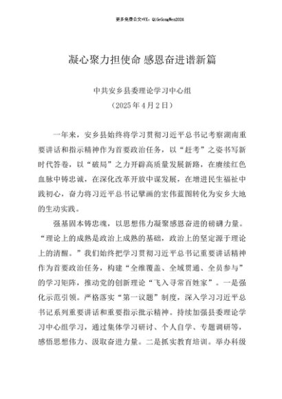 / 党组学习:20250402凝心聚力担使命 感恩奋进谱新篇——中共安乡县委理论学习中心组