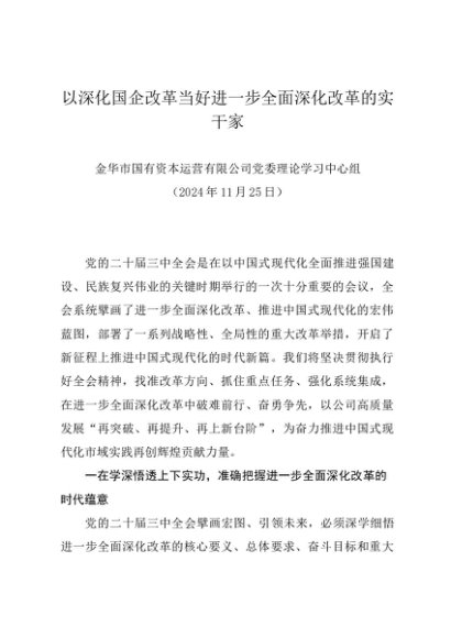 / 党组学习:20241125以深化国企改革当好进一步全面深化改革的实干家——金华市国有资本运营有限公司党委理论学习中心组