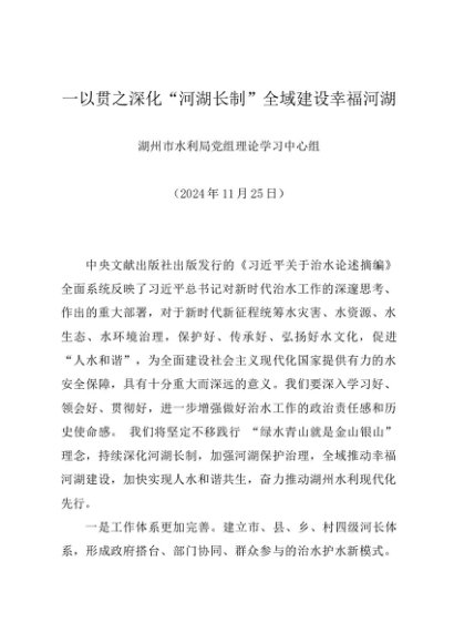 / 党组学习:20241125一以贯之深化“河湖长制”全域建设幸福河湖——湖州市水利局党组理论学习中心组