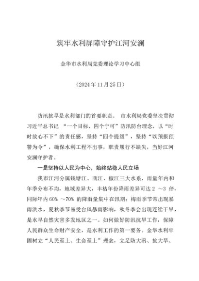 / 党组学习:20241125筑牢水利屏障守护江河安澜——金华市水利局党委理论学习中心组