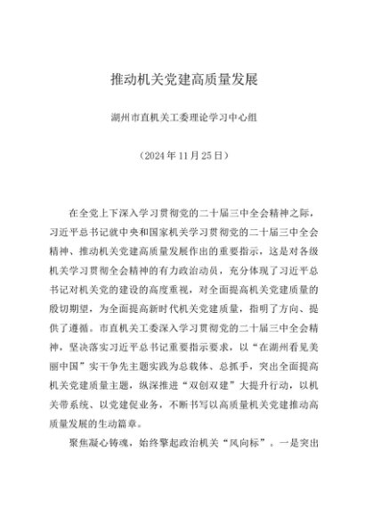 党组学习:20241125推动机关党建高质量发展——湖州市直机关工委理论学习中心组