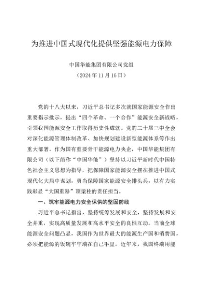 / 党组学习:20241116为推进中国式现代化提供坚强能源电力保障——中国华能集团有限公司党组