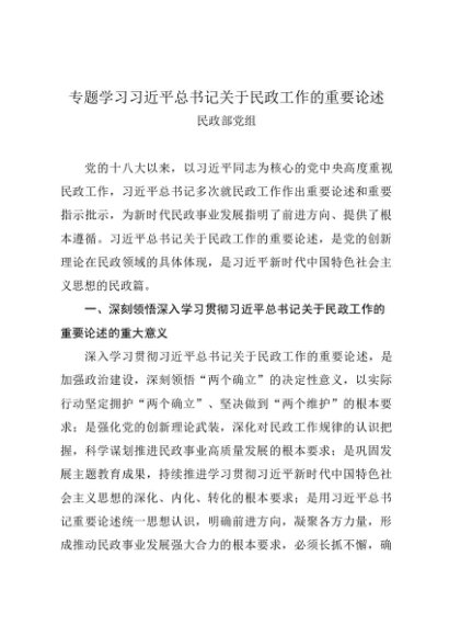 党组学习:20241027专题学习习近平总书记关于民政工作的重要论述——民政部党组