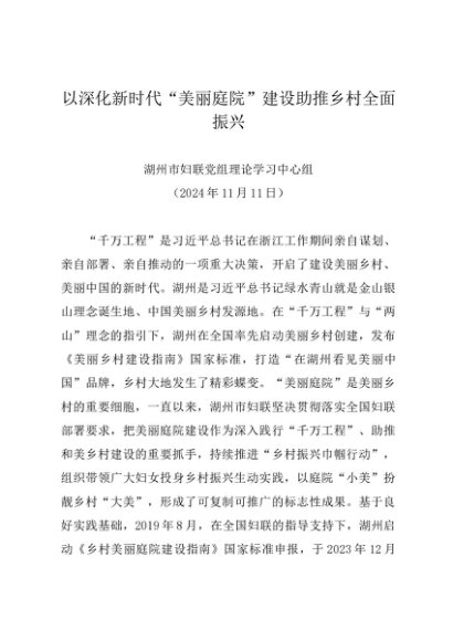 / 党组学习:20241111以深化新时代“美丽庭院”建设助推乡村全面振兴——湖州市妇联党组理论学习中心组