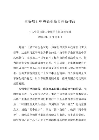 党组学习:20241028(贯彻落实三中全会精神)更好履行中央企业新责任新使命——中国兵器工业集团有限公司党组