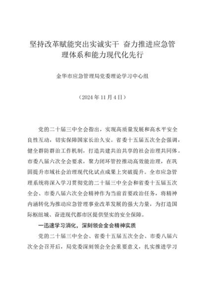 党组学习:20241104坚持改革赋能突出实诚实干 奋力推进应急管理体系和能力现代化先行——金华市应急管理局党委理论学习中心组