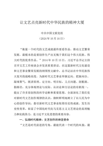 党组学习:20241016(文艺工作座谈会重要讲话10周年)让文艺点亮新时代中华民族的精神大厦——中国文联党组