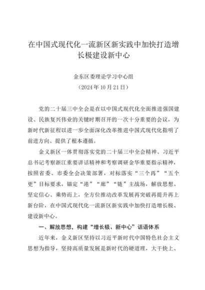 / 党组学习:20241021在中国式现代化一流新区新实践中加快打造增长极建设新中心——金东区委理论学习中心组