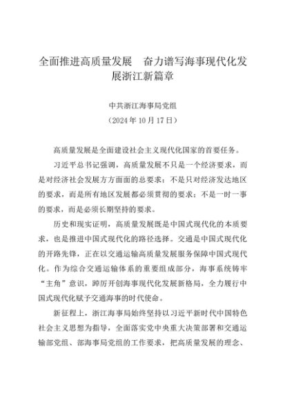/ 党组学习:20241017全面推进高质量发展 奋力谱写海事现代化发展浙江新篇章——浙江海事局党组