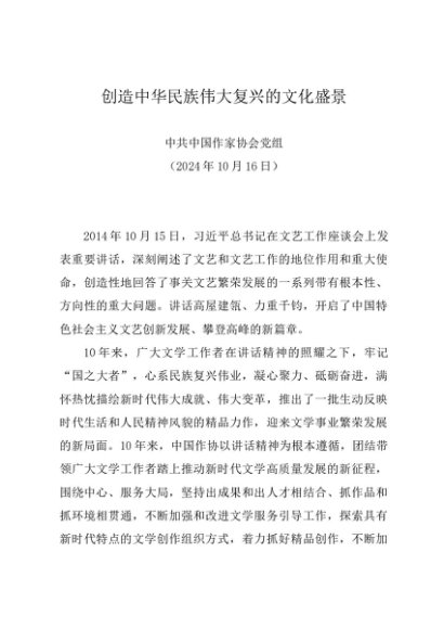 / 党组学习:20241016(文艺工作座谈会重要讲话10周年)创造中华民族伟大复兴的文化盛景——中国作家协会党组