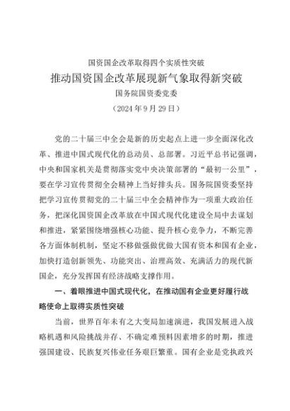 / 党组学习:20240929国资国企改革取得四个实质性突破——国务院国资委党委