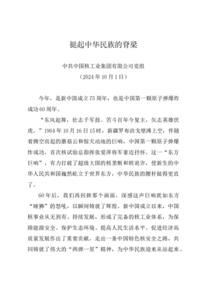 党组学习:20241001(建国75周年核工业成就回顾)挺起中华民族的脊梁——中国核工业集团有限公司党组