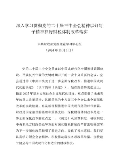 / 党组学习:20241001深入学习贯彻党的二十届三中全会精神以钉钉子精神抓好财税体制改革落实——财政部党组理论学习中心组