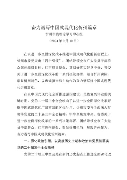 / 党组学习:20240910(学习贯彻二十届三中全会精神)奋力谱写中国式现代化忻州篇章——忻州市委理论学习中心组