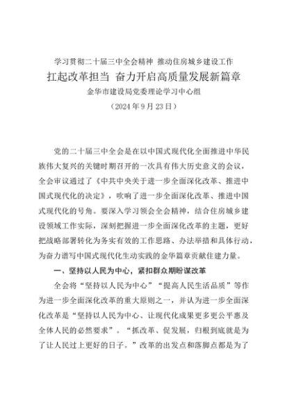 / 党组学习:20240923学习贯彻二十届三中全会精神 推动住房城乡建设工作——金华市建设局党委理论学习中心组