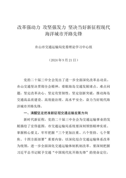 党组学习:20240921(学习贯彻二十届三中全会精神) 坚决当好新征程现代海洋城市开路先锋——舟山市交通运输局党委理论学习中心组