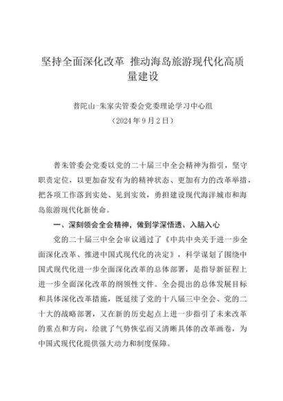 党组学习:20240902(学习贯彻二十届三中全会精神)坚持全面深化改革 推动海岛旅游现代化高质量建设——普陀山管委会党委理论学习中心组