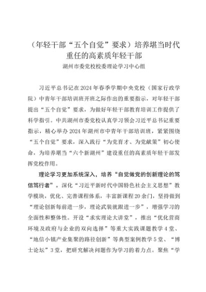 / 党组学习:20240830(年轻干部“五个自觉”要求)培养堪当时代重任的高素质年轻干部——湖州市委党校校委理论学习中心组