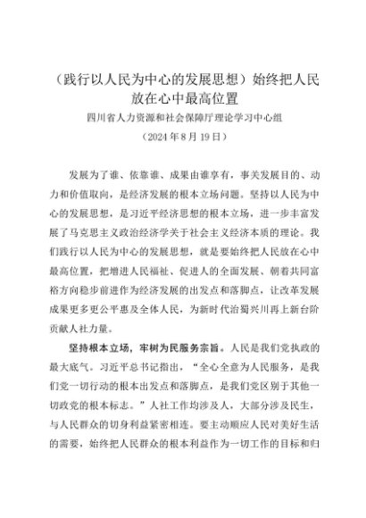 党组学习:20240819(践行以人民为中心的发展思想)始终把人民放在心中最高位置——四川省人力资源和社会保障厅理论学习中心组