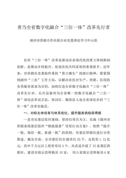 党组学习:20240830勇当全省数字化融合“三位一体”改革先行者——湖州市供销合作社联合社党委理论学习中心组