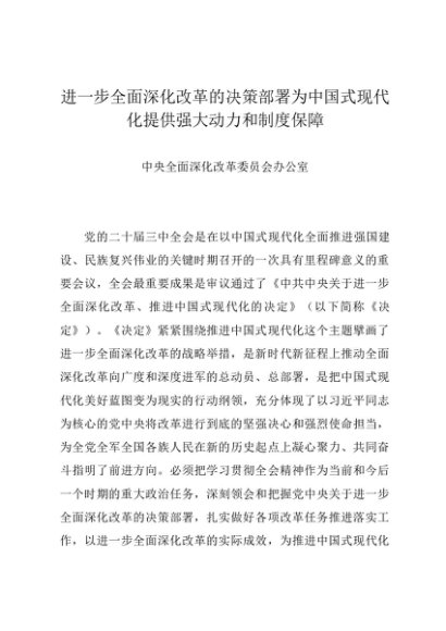 党组学习:20240816(学习贯彻三中全会精神)进一步全面深化改革的决策部署为中国式现代化提供强大动力和制度保障——中央全面深化改革委员会办公室