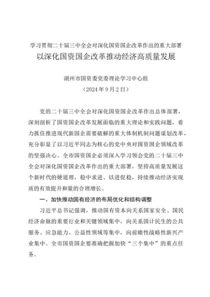 / 党组学习:20240902学习贯彻二十届三中全会对深化国资国企改革作出的重大部署——湖州市国资委党委理论学习中心组