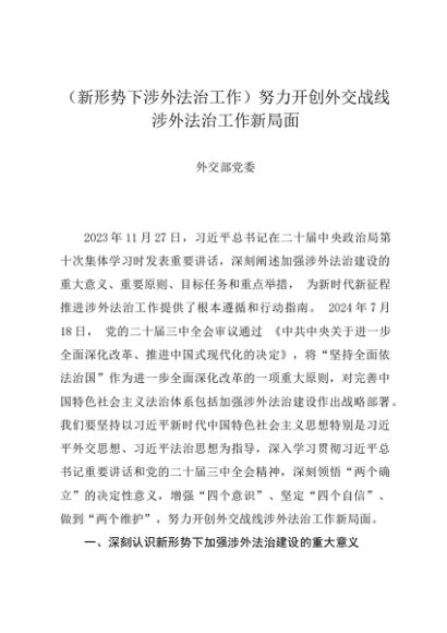 / 党组学习:20240830(新形势下涉外法治工作)努力开创外交战线涉外法治工作新局面——外交部党委