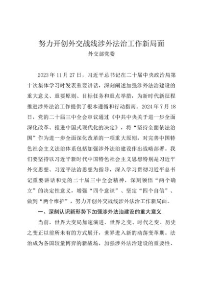 / 党组学习:20240801努力开创外交战线涉外法治工作新局面——外交部党委