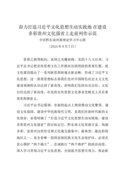 党组学习:20240807奋力打造习近平文化思想生动实践地 在建设多彩贵州文化强省上走前列作示范——中共黔东南州委理论学习中心组