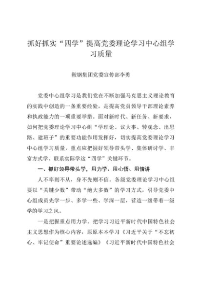 / 党组学习:20240730(经验交流)抓好抓实“四学”提高党委理论学习中心组学习质量——鞍钢集团党委宣传部