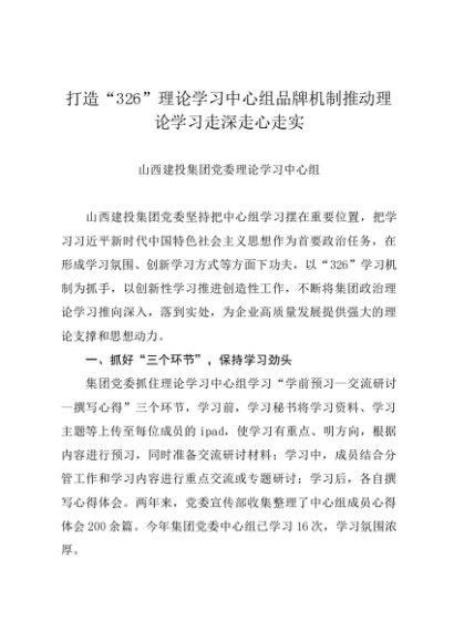 党组学习:20240730(经验交流)打造“326”理论学习中心组品牌机制推动理论学习走深走心走实——山西建投集团党委理论学习中心组