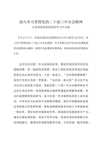 / 党组学习:20240802深入学习贯彻党的二十届三中全会精神——江苏省政府党组理论学习中心组