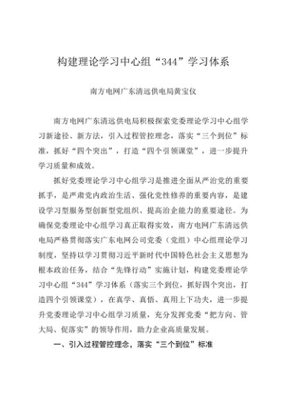 党组学习:20240730(经验交流)构建理论学习中心组“344”学习体系——南方电网广东清远供电局