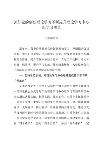/ 党组学习:20240730(经验交流)抓好党的创新理论学习不断提升理论学习中心组学习质量——巴彦淖尔市